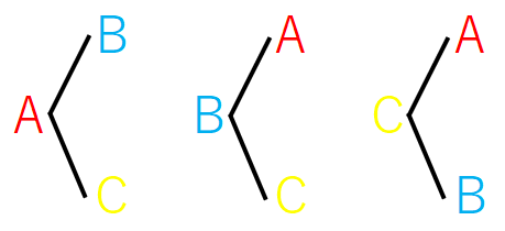 (1) A, B, C の3文字の中から、異なる2文字を並べる。