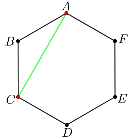 例えば、6個の頂点からAとCを選ぶと次のような線分が1つ定まります。