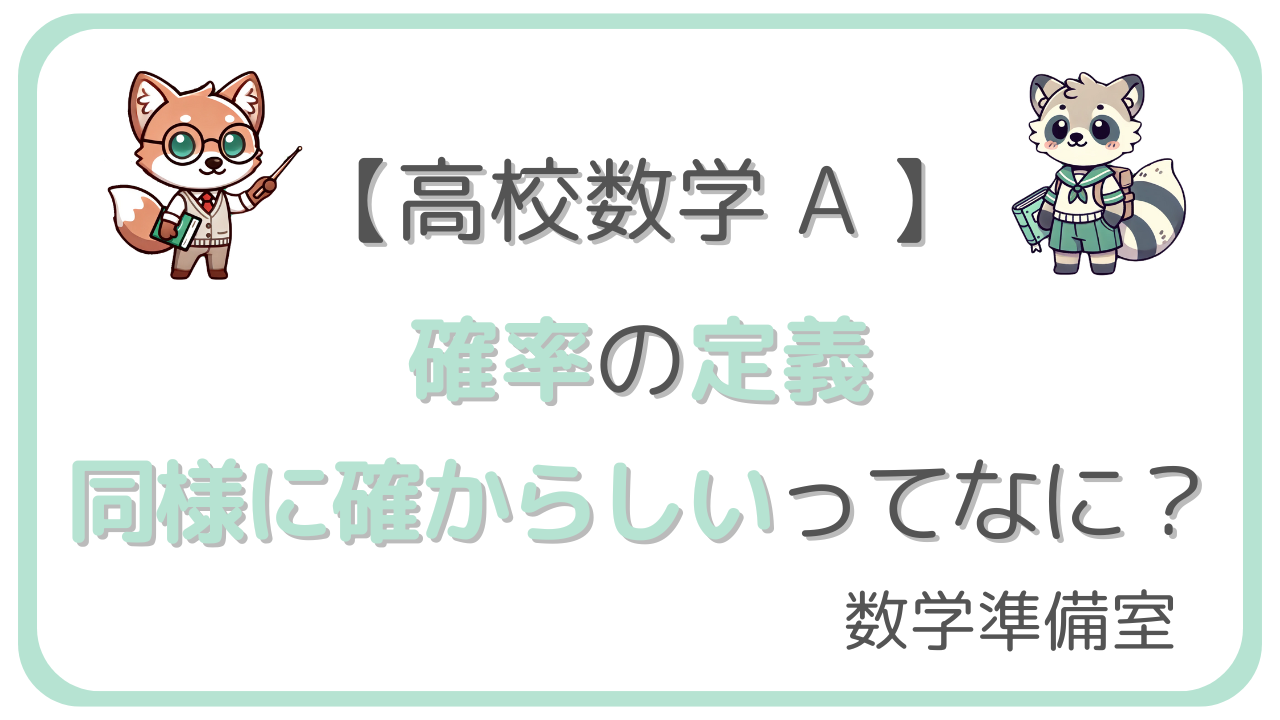 その通り!この考え方は確率の基本になるから、もっと複雑な問題でも「同様に確からしいかどうか」を意識して考えるようにしよう。