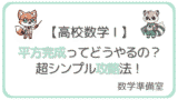 平方完成とは、\(ax^2+bx+c\) を \(a(x-p)^2+q\) に変形すること。