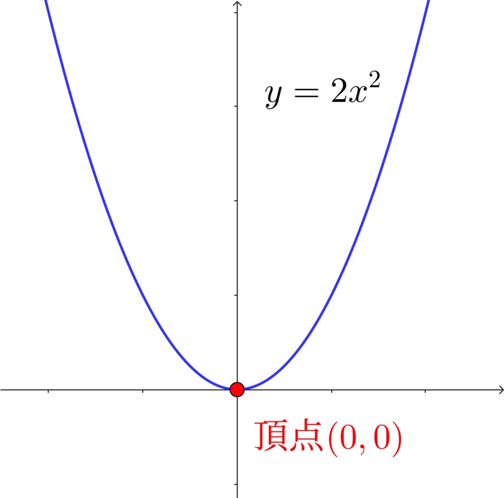 \(y=2x^2\) のグラフは、頂点 \((0,0)\) 、下に凸の放物線です。