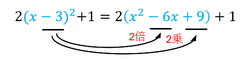 2乗の展開は、真ん中は「2倍」、後ろは「2乗」だったね!