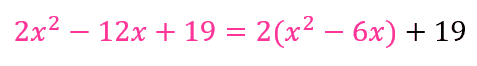 では、\(2x^2-12x+19\) を実際に平方完成していきましょう。